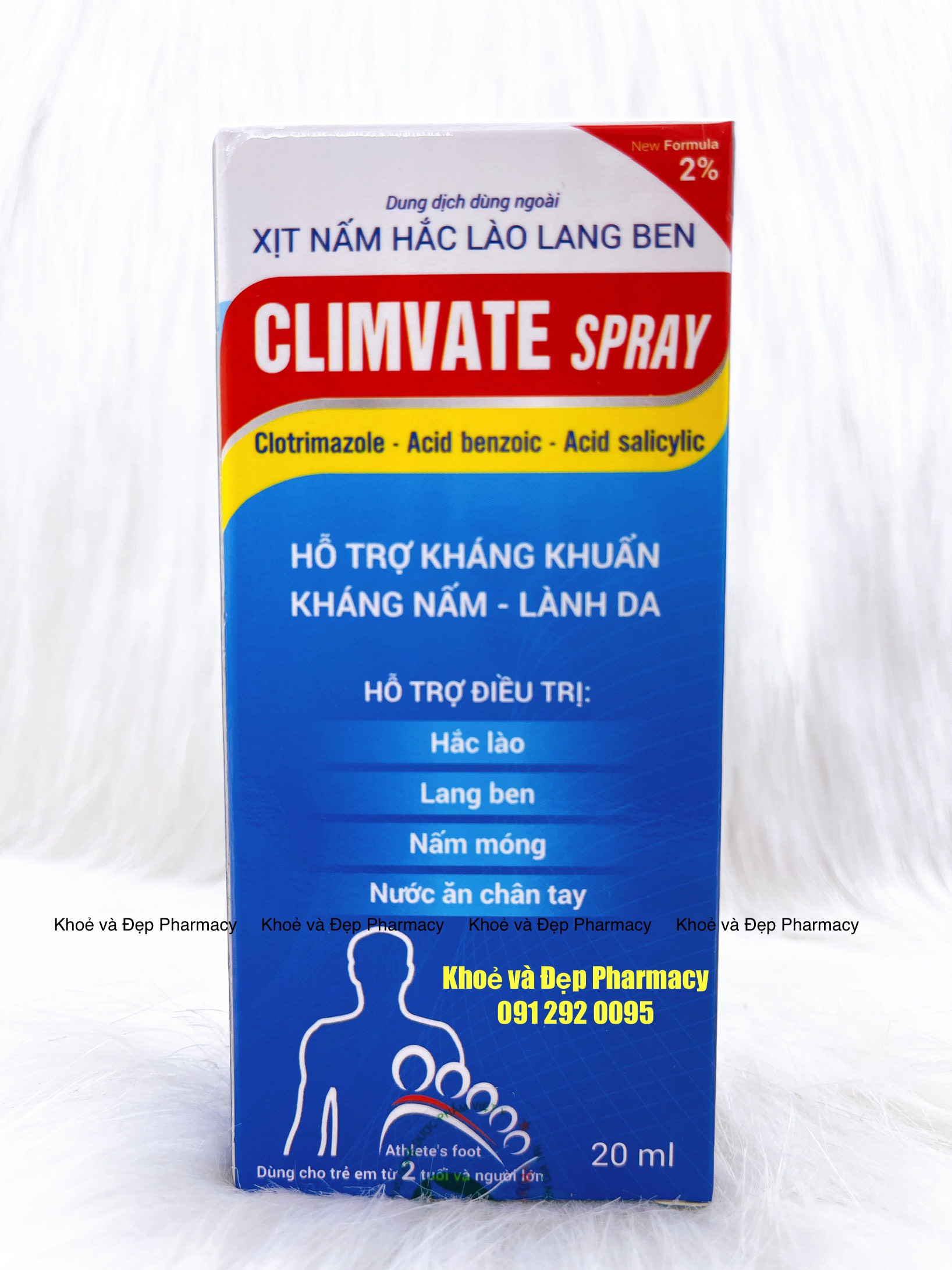 Acid benzoic, Acid Salicylic, Vitamin E, Allantoin, Tinh dầu tràm, Clotrimazole, Ethanol, Propylen glycol, Nước tinh khiết vừa đủ 1 chai.