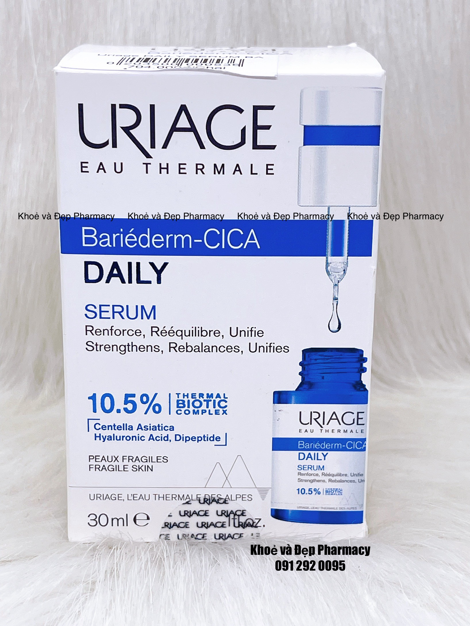 – Lấy serum Uriage Bariéderm-CICA Daily Serum bôi lên da đã làm sạch và khô cả sáng và tối.